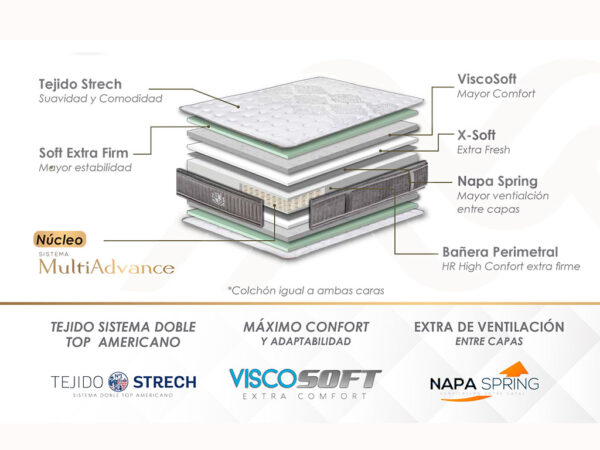 Colchon de muelle ensacado, triple refuerzo Box 360, nucleo sistema MultiAdvance.