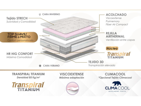 Colchon de 85 kg de densidad, nucleo Transpiral Titanium 800