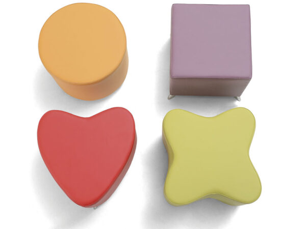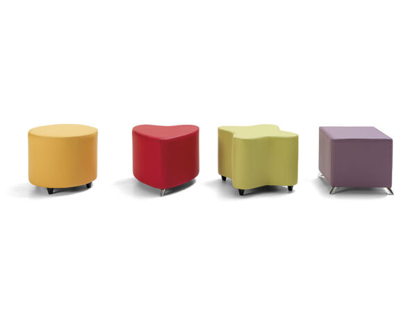 Los pouffs, no solo hacen honor a su nombre, por su indiscutible imagen divertida y desenfadas, si no también porque están formados por cuatro diseños distintos: el de corazón, trébol, círculo y cuadrado. Elija el acabado que prefiera, tanto en tejido, como entre sus opciones de pata, metálica y de madera.